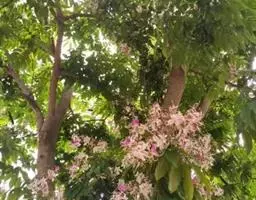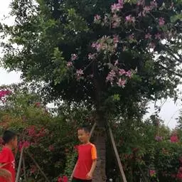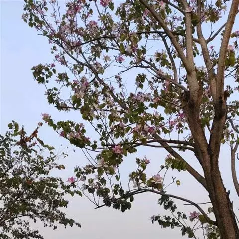 洋紫荆:落叶乔木;树皮暗褐色,近光滑;幼嫩部分常被灰色短柔毛;枝广展,硬而稍呈之字曲折,无毛。叶近…