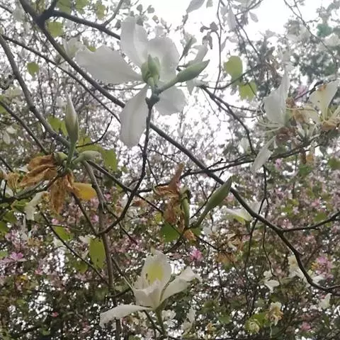 白花羊蹄甲(学名:Bauhinia variegata L.)羊蹄甲属,又名老白花皮,白花洋紫荆。叶近革质,花序总状或伞房状,顶生或侧生,总花梗短而粗,花托长12毫米,花蕾纺锤形;苞片及小苞片卵形,早落;花萼佛焰苞状,花大,花瓣白色或淡红色。花期3-5月,果期5-8月。