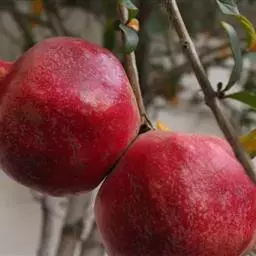 成熟后变成大型而多室、多子的浆果,每室内有多数子粒;外种皮肉质,呈鲜红、淡红或白色,多汁,甜而带酸,即为可食用的部分;内种皮为角质,也有退化变软的,即软籽石榴。