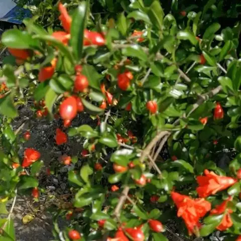 石榴(拉丁名:Punica granatum L.)落叶乔木或灌木;单叶,通常对生或簇生,无托叶。花顶生或近顶生,单生或几朵簇生或组成聚伞花序,近钟形,裂片5-9,花瓣5-9,多皱褶,覆瓦状排列;胚珠多数。浆果球形,顶端有宿存花萼裂片,果皮厚;种子多数,浆果近球形,果熟期9-10月。外种皮肉质半透明,多汁;内种皮革质。