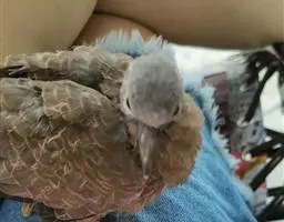 魔术鸽和鸽子一样全年可繁殖,一公一母交配后,正常情况下每次产蛋2枚,偶尔会只产一枚蛋。人工繁殖建议选择长60厘米宽40厘米高40厘米的笼子作为繁殖笼,在笼中栖架上绑定一小窝,窝内放一些垫料。公母交配后一周内就会产蛋。白斑鸠产下第一个蛋后48小时内产下第二枚蛋。这时,公母轮流孵化。从第二个蛋产下那一日开始计算,16日后,小鸠破壳而出。公母共同哺育小鸠,约25-30天后,小鸠可以独立吃食。下图是白斑鸠30日龄所拍。白斑鸠出壳后5-7月龄可达性成熟。繁殖建议选择7月龄以上的成年白斑鸠。