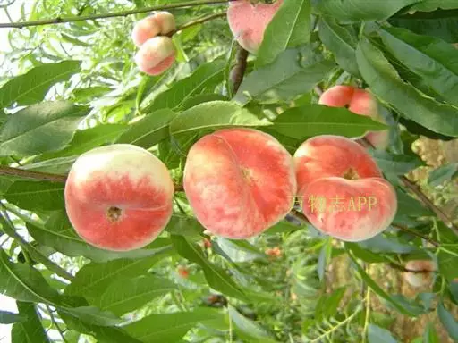 6.美国大红蟠:系从美国引进的大果型蟠桃新品种,果实在黄淮地区7月底成熟,平均单果重220克。果形扁圆,果面鲜红色,可溶性固形物含量为14.5%,味甜。