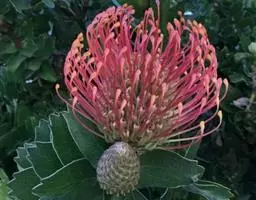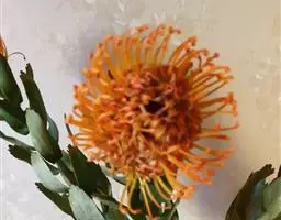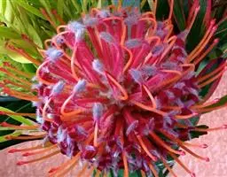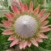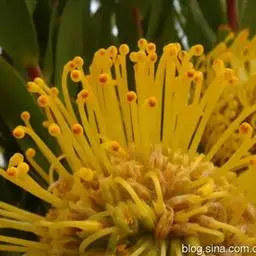 帝王花,山龙眼科帝王花属多年生常绿灌木植;茎干粗壮,叶色翠绿光亮;花朵呈圆球状;其苞片有的完全打开,…