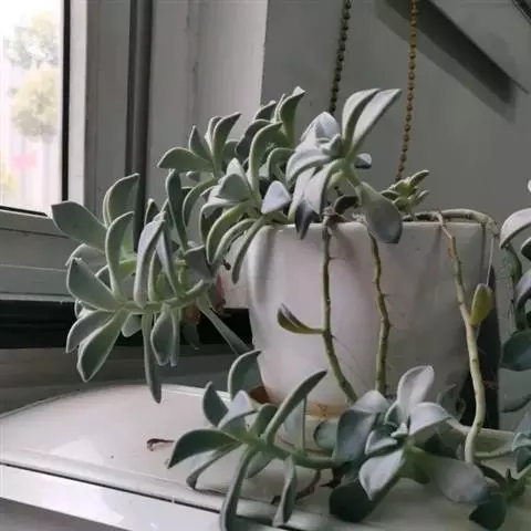 胧月 E.Walther)是景天科,风车草属多肉植物,常绿蔓生亚灌木,叶肥厚无柄,灰蓝色,…