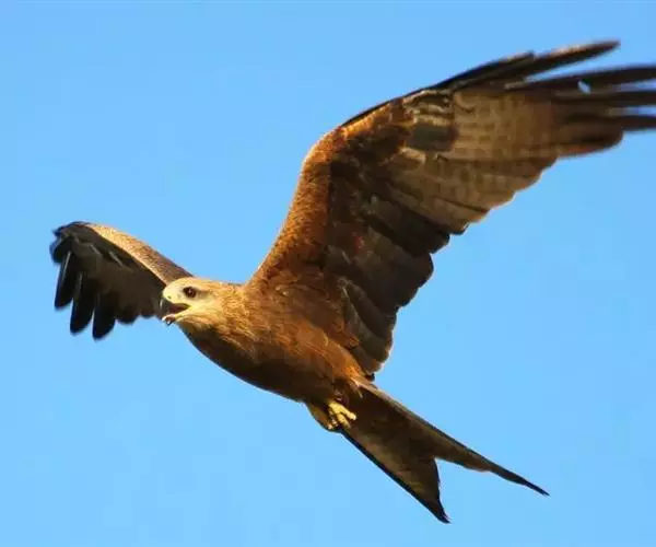黑鸢(学名:Milvus migrans)是一种中型猛禽,共有7个亚种。体长54-69厘米。上体暗褐色,下体棕褐色,均具黑褐色羽干纹,尾较长,呈叉状,具宽度相等的黑色和褐色相间排列的横斑;飞翔时翼下左右各有一块大的白斑。雌鸟显著大于雄鸟。 栖息于开阔平原、草地、荒原和低山丘陵地带。白天活动,常单独在高空飞翔,秋季有时亦呈2-3只的小群。主要以小鸟、鼠类、蛇、蛙、鱼、野兔、蜥蜴和昆虫等动物性食物为食。一般通过在空中盘旋来观察和觅找食物。分布于欧亚大陆、非洲、印度,一直到澳大利亚。