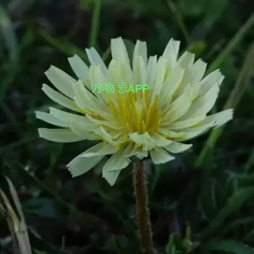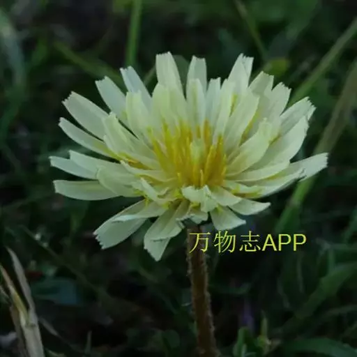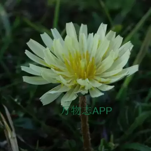 白花蒲公英(Taraxacum pseudo- albidum Kitag. ),菊科,蒲公英属。多年生草本,植株高3—10厘米。叶无毛,条形,少狭倒卵形。舌状花白色,花果期6—8月 。分布于产甘肃西部(阿克塞)、青海、新疆、西藏等省区。