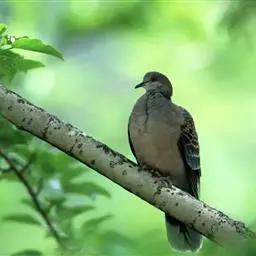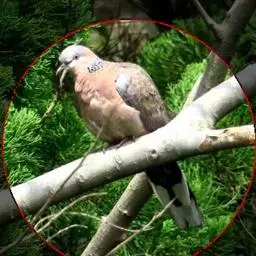 山斑鸠,是鸽形目鸽鸠科斑鸠属鸟类,又名金背斑鸠、棕背斑鸠、山鸠、金背鸠、麒麟斑、麒麟鸠、东方斑鸠、绿斑鸠、山鸽子。山斑鸠颈侧具明显黑白色条纹的块状斑,上体深褐色、具扇贝状斑纹,羽缘棕色,尾羽近黑色,下体多偏粉色。虹膜黄色,喙灰色,脚粉色。山斑鸠是留鸟,在中国常见且分布广泛。此外,还分布于不丹、尼泊尔、巴基斯坦、印度、日本等国。栖息于针阔混交林、季风常绿阔叶林、果园及农耕区,多成对活动于开阔农耕区、村舍、寺院周围及防火林带。取食于地面,主要觅食植物种子、果实、嫩芽等,也吃昆虫。山斑鸠飞翔时鼓翼快速,叫声为反复而低沉的“咕咕咕”声。繁殖期在4-7月,营巢于林中树上,通常一年繁殖2窝,窝卵数2枚,由雌雄亲鸟轮流孵卵,孵化期18~19天。山斑鸠的肉、卵可食,肉入药可益气明目、强筋壮骨,治久病气虚、衰弱无力、两目昏暗等病症。山斑鸠啄食杂草种子,对农田清除杂草有益;但有时也刨食农作物及树的种子。山斑鸠