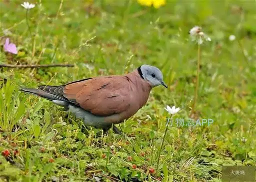 火斑鸠,是鸽形目鸠鸽科斑鸠属的鸟类动物。火斑鸠全长约21-24厘米,雄鸟头顶和后颈蓝灰,颏和上喉蓝白,…