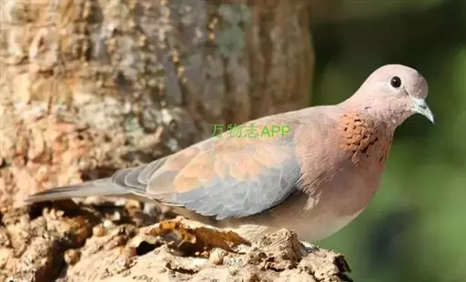 棕斑鸠,是鸽形目鸠鸽科斑鸠属鸟类。整个头和颈淡粉红色,头顶和前额较暗,颊、喉较淡,…