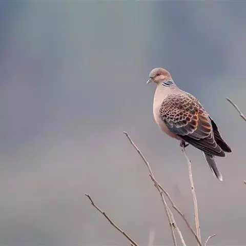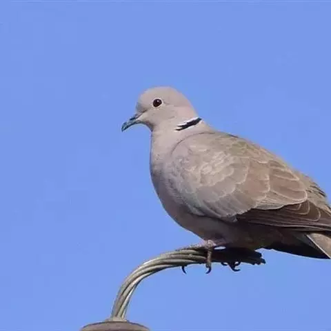 欧斑鸠体长27厘米,是一种体型略小的粉褐色斑鸠。颈侧具多黑白色细纹的斑块,翼覆羽深褐,…