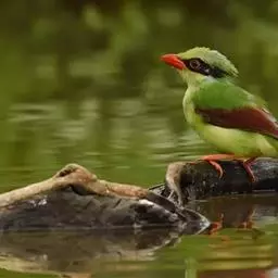 蓝绿鹊:中型鸟类,共有5个亚种。体长36-38厘米。尾长,嘴、脚红色。通体羽色主要为草绿色,…