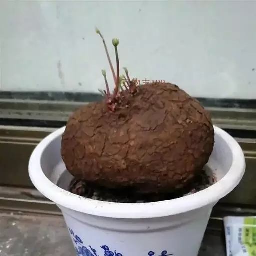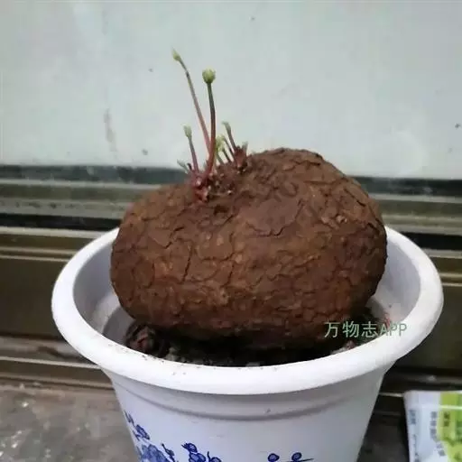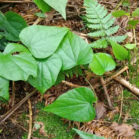 血散薯,又名黔桂千金藤、一点血。草质、落叶藤本,长2-3米,枝、叶含红色液汁;块根硕大,露于地面,褐色,表面有凸起的皮孔;枝稍肥壮,常紫红色,无毛。叶纸质,三角状近圆形,长5-15厘米,宽4.5-14厘米,顶端有凸尖,基部微圆至近截平,两面无毛;掌状脉8-10条,向上和平伸的5-6条,网脉纤细,均紫色;叶柄与叶片近等长或稍过之。复伞形聚伞花序腋生或生于腋生、常具小型叶的短枝上,雄花序1至3回伞状分枝,小聚伞花序有梗,常数个聚于伞梗的末端;雄花:萼片6,倒卵形至倒披针形,长约1.5毫米,内轮稍阔,均有紫色条纹;花瓣3,肉质,贝壳状,长约1.2毫米,常紫色或带橙黄;雌花序近头状,小聚伞花序几无梗;雌花:萼片1,花瓣2,均较雄花的小。核果红色,倒卵圆形,甚扁,长约7毫米;果核背部两侧各有2列钩状小刺,每列18-20颗,胎座迹穿孔。花期夏初。