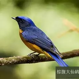 棕腹大仙鹟:体重24-28克,体长15-17厘米,是一种小型的色彩亮丽的鹟。雄鸟上体深蓝,下体棕色,…