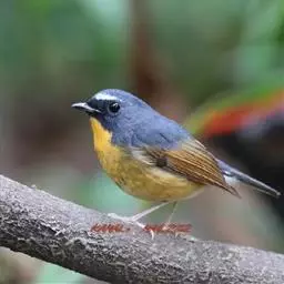 棕胸蓝姬鹟:属小型鸣禽,体长10-13厘米,体重6-10克,是一种体型很小的灰蓝及棕色鹟,…