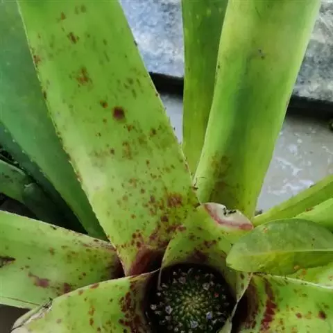 观赏凤梨的病害可分为两大类,一类称为非传染性病害,又叫生理病害,是因为环境条件如光、温、水、肥等不适而引起的。在栽培凤梨时,这类病害更为常见。另一类称为传染性病害,是因为微生物如真菌、细菌、病毒等侵染所引起的。