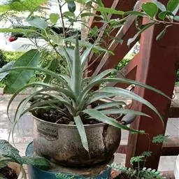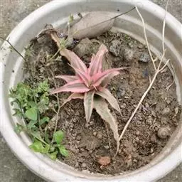 换盆:种植4个月后便需换盆,换盆时,先在盆底放一层介质,再把凤梨植株从小盆中连土取出,放在盆中央,周围放入介质,轻压以确保植株直立,同样介质不宜压得太紧,以确保良好的透气性。种植深度以3至4厘米为宜。换盆后立即浇透清水,一个月后便可浇肥。