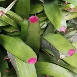 观赏凤梨小规模生产和家庭栽培,一般采用蘖芽扦插。观赏凤梨原株开花前后基部叶腋处产生多个蘖芽,待蘖芽长到10厘米左右,有3-5片叶时,用利刀在贴近母株的部位连短缩茎切下,伤口用杀菌剂消毒后稍晾干,蘸浓度为300-500毫克/千克的萘乙酸,扦插于珍珠岩、粗沙或培养土中,保持基质和空气湿润,并适当遮荫,1-2个月后即有新根长出,可转入正常管理。注意蘖芽太小时扦插不易生根,极易腐烂;太大时分株,消耗营养太多,降低繁殖系数。