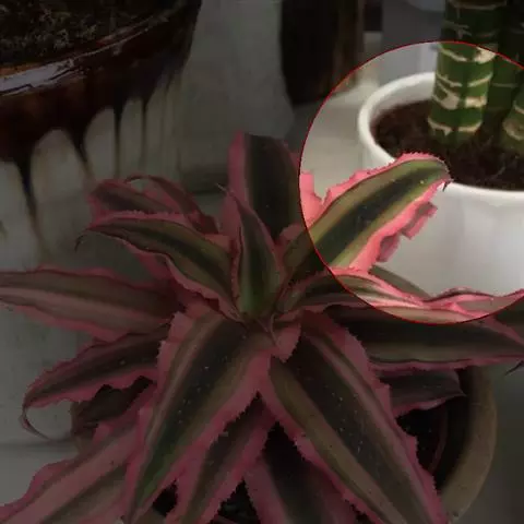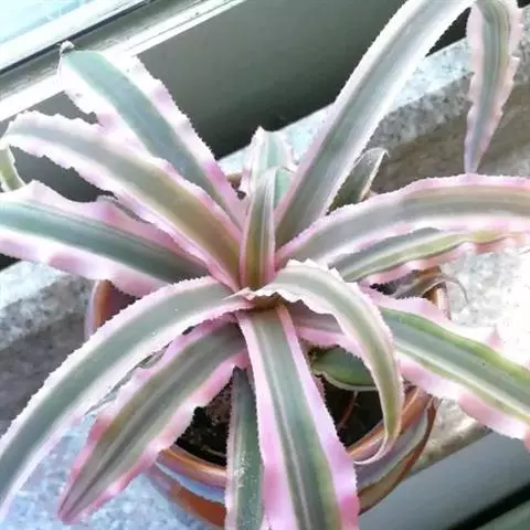 多年生常绿草本。株高25-30厘米,茎短。叶互生,革质,带状,常基生,莲座式排列,叶缘有锯齿。叶中央有乳白至乳黄色纵纹,基部丛生成筒状。常有盾状具柄的吸收水分的鳞片,叶上面凹陷,基部常呈鞘状,雨水沿叶面流入由叶鞘形成的贮水器中。