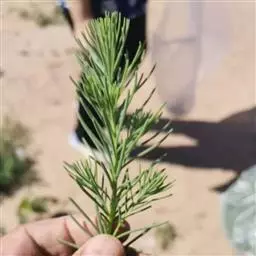 盐爪爪 播种时间:在影响盐爪爪苗质量和产量的5个因素中,播种时间影响最大,其次是播种方法和播种量,再次为施肥量和覆土厚度。因此,要使盐爪爪苗木质量和产量达到最佳,首先要掌握好播种时间,在中国柴达木地区,最佳播种时间是每年4月初至5月初。盐爪爪苗期抗冻但不耐旱,此时播种,土壤墒情较好,有利于出苗,等到气温升高时,苗木已长大,增强了抗性,同时也延长了苗木生长期,因此大大提高了合格苗产量。