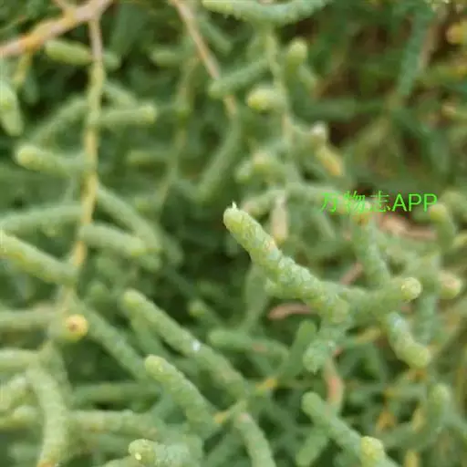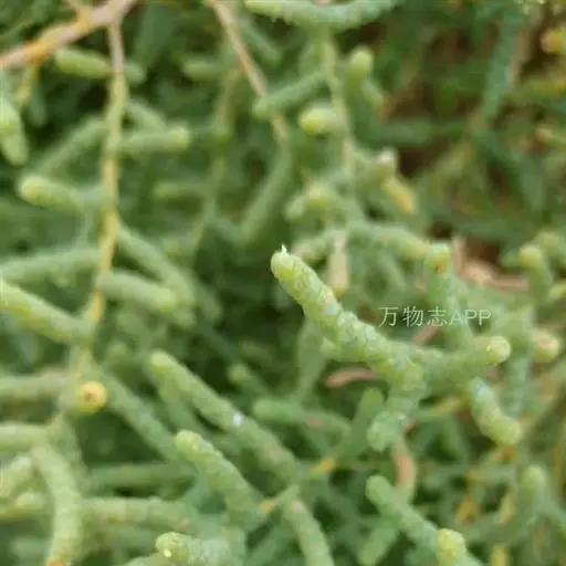小灌木,高20-50厘米。茎直立或平卧,多分枝;枝灰褐色,小枝上部近于草质,黄绿色。叶片圆柱状一,伸展或稍弯,灰绿色,长4-10毫米,宽2-3毫米,顶端钝,基部下延,半抱茎。