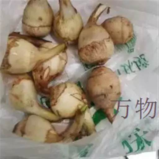 慈姑(学名:Sagittaria trifolia L. var. sinensis (Sims.) Makino )泽泻科多年生草本植物,生在水田里,叶子像箭头,开白花。地下有球茎,黄白色或青白色,以球茎作蔬菜食用。可以吃。也作茨菰。本变种与原变种不同在于:植株高大,粗壮;叶片宽大,肥厚,顶裂片先端钝圆,卵形至宽卵形;匍匐茎末端膨大呈球茎,球茎卵圆形或球形,可达5-8×4-6厘米;圆锥花序高大,长20-60厘米,有时可达80厘米以上,着生于下部,具1-2轮雌花,主轴雌花3-4轮,位于侧枝之上;雄花多轮,生于上部,组成大型圆锥花序,果期常斜卧水中;果期花托扁球形,直径4-5毫米,高约3毫米。种子褐色,具小凸起。