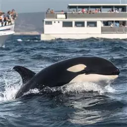 虎鲸,是鲸偶蹄目海豚科虎鲸属哺乳动物。成体体重6600千克,平均体长6-9米;头部略圆,…