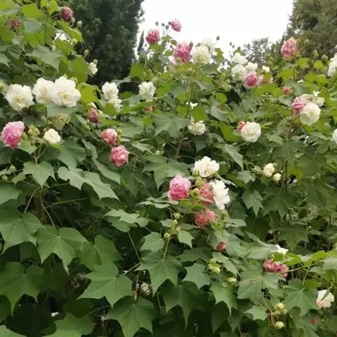 锦叶扶桑又名彩叶扶桑,为扶桑的一个变种。回叶片五颜六色,极具观赏性。植株各枝条上的叶色不尽相同,…