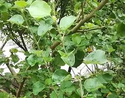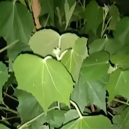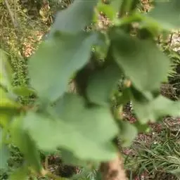 叶纸质至近革 质,卵状长圆形至椭圆状长圆形,长8-15厘米,宽6-7厘米,先端短渐尖,基部钝至阔楔形,全缘,两面均平滑无毛,上面暗绿色,下面苍绿色,基生脉3 (-5)条,在下面隆起,叶柄长2-4.5厘米,疏被短柔毛;托叶小,早落。花未见。