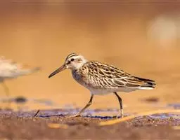 阔嘴鹬是涉禽,体长17厘米。特征为翼角常具明显的黑色块斑并具双眉纹。与黑腹滨鹬平滑下弯的嘴相比,…