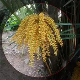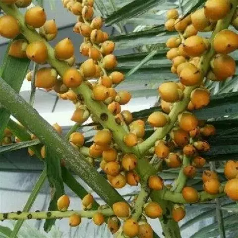 这两种植物外形与“袖珍椰子”较相似,具体区分如下: 1.散尾葵(Chrysalidocarpus lutescensH. Wendl.):棕榈科散尾葵属,丛生灌木至小乔木,高3-8米;茎基部略膨大。叶羽状全裂,扩展而稍弯;裂片40-60对,2列排列,较坚硬,通常不下垂,披针形,长40-60厘米,顶端长尾状渐尖并呈不等长的短2裂;叶轴光滑而呈黄绿色,近基部有凹槽;叶鞘长而略膨大,通常黄绿色,初时上部被白粉。肉穗花序生于叶鞘束下,多分枝,排成圆锥花序式,花雌雄同株,小而呈金黄色,雄花萼片和花瓣各3片,雄蕊6枚;雌花花被与雄花同,子房3室,有短的花柱和阔的柱头。果稍呈陀螺形,长约1.5厘米,直径约5毫米,紫黑色,无内果皮。 原产马达加斯加;现广东、广西有栽培。多植于庭园和花圃中。