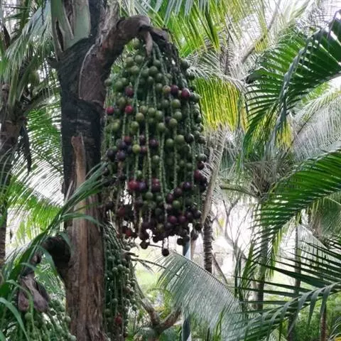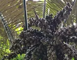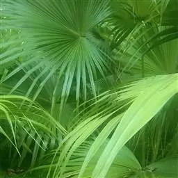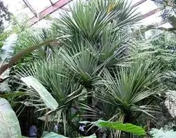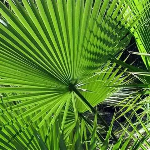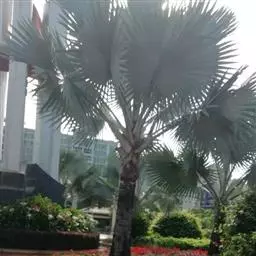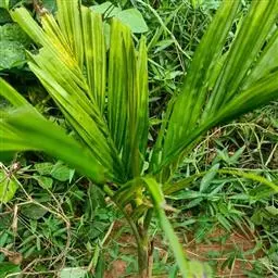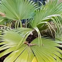 2.夏威夷椰子(Pritchardia gaudichaudiiH. wendl):棕榈科茶马椰子属,茎干直立,株高1-3米。茎节短,中空, 从地下匍匐茎发新芽而抽长新枝,呈丛生状生长,不分枝。叶多着生茎干中上部,为羽状全裂,裂片披针形,互生,叶深绿色,且有光泽。花为肉穗花序,腋生于茎 干中上部节位上,粉红色。浆果紫红色。开花挂果期可长达2-3个月。