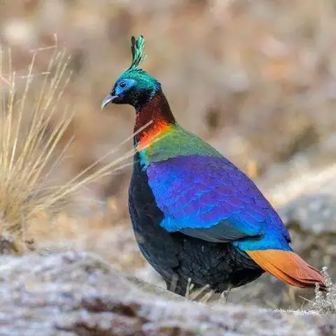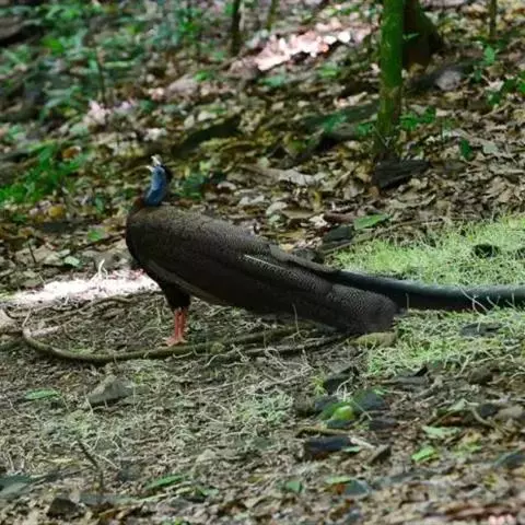 黑长尾雉大型鸡类,体长53~88厘米。雄较雌大。雄鸟通体紫蓝色,脸鲜红色,翅上有一条显著的白色翅斑…