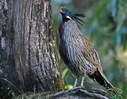 黄腹角雉:是鸟纲、雉科中国特产的一种鸟类。体长约50-65厘米。雄鸟上体栗褐色,…