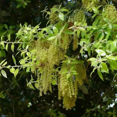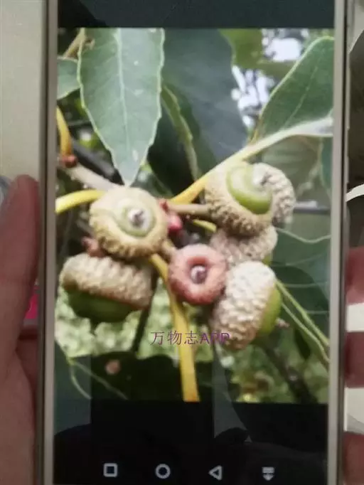 雄花序长4-8厘米,雄花单生或数朵簇生于花序轴,微有毛,花被6裂,雄蕊通常10枚;雌花序生于新枝叶腋,单生或2-3朵簇生。壳斗杯形,包着坚果约1/2,直径1.2-2厘米,高1-1.5厘米;小苞片卵状披针形,长约2毫米,排列紧密,被灰白色短柔毛。