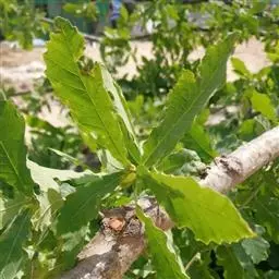 本变种与原变种不同处,叶缘具粗大锯齿,齿端尖锐,内弯,叶背密被灰色细绒毛,叶片形状变异较大。花期3-4月,果期10-11月。