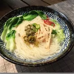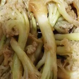 3、配菜其实不是很讲究,什么都可以,都主要以针叶菜为主,最常配的就是黄豆芽,莴笋尖,蒜苗,芹菜等。