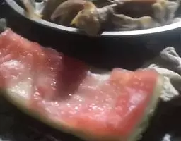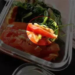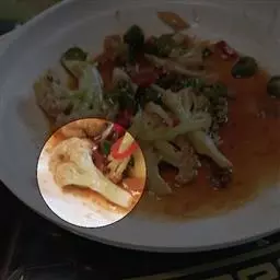 14. 连汤带肉倒进铺 了蔬菜的大碗里。