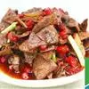 牛肉150 克、葱和蒜50克、干辣椒6克、花椒1克、盐2克、调水淀粉20克、豆瓣酱20克、酱油15克、香油10克、精炼油25克、姜5克、料酒20克、高汤适量。