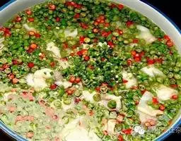 3.卤汁用旺火烧沸,约10分钟后,取碗一只,舀入卤水250克,加入味精、辣椒油、酱油、花椒面调成味汁。