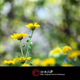 野菊在寒秋开花,人们常借野菊来表现傲霜斗寒精神,余亚飞《野菊花》赞道:“田边河岸山坡上,野菊丛生花朵黄;处在寒秋时节里,傲霜怒放发清香”。野菊花有一种朴实的美。它能与风霜做不屈不挠的斗争,具有顽强的生命力。