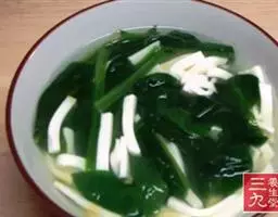 忌海藻、蒸菜、生葱、猪肉、冷水。