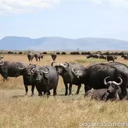 非洲野水牛:共有5个亚种。头体长2.1-3.4米,身高1-1.7米,体重300-900千克。胸膛宽…