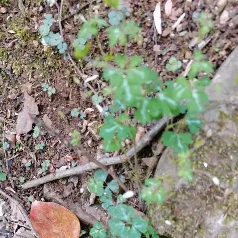 直根细长,粗径2-3.5毫米,生少数侧根。茎(2-)4-9(-17)条,多少斜升,生少数分枝,高8-30厘米。基生叶多数,无毛;叶片轮廓三角状卵形,长0.8-2.7厘米,宽1-3厘米,三全裂,中全裂片等边菱形,长达12毫米,宽达11毫米,下延成的细柄,常再三深裂,深裂片长椭圆状倒卵形至线状狭倒卵形,常具1-4个钝锯齿,侧全裂片通常无柄,不等二深裂;叶柄长2.5-13厘米。茎生叶1-2,小。花小,直径3-5毫米;花梗纤细,长3-30毫米;萼片椭圆形,淡黄色,长3-4.5毫米,宽1.7-2毫米,具3条脉,顶端钝或急尖;花瓣长约1毫米,近二唇形,上唇顶端圆,下唇较短;雄蕊通常10-15,花药淡黄色,长0.5毫米左右,花丝长约2.5毫米;心皮6-20,长约2毫米,无毛。蓇葖直立,线状长椭圆形,长8-10毫米;种子4-14粒,卵球形或狭卵球形,长0.5-0.7毫米。5-6月开花,6-7月结果。