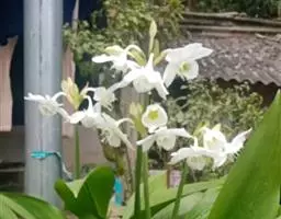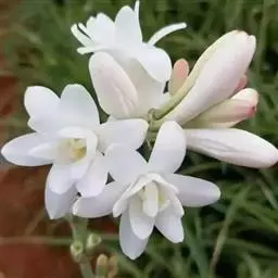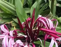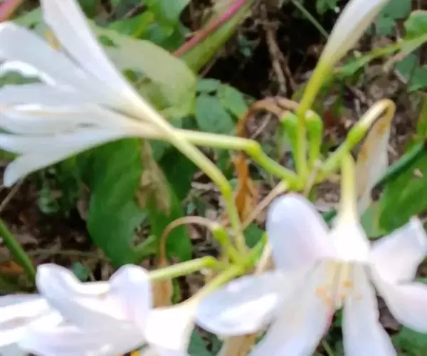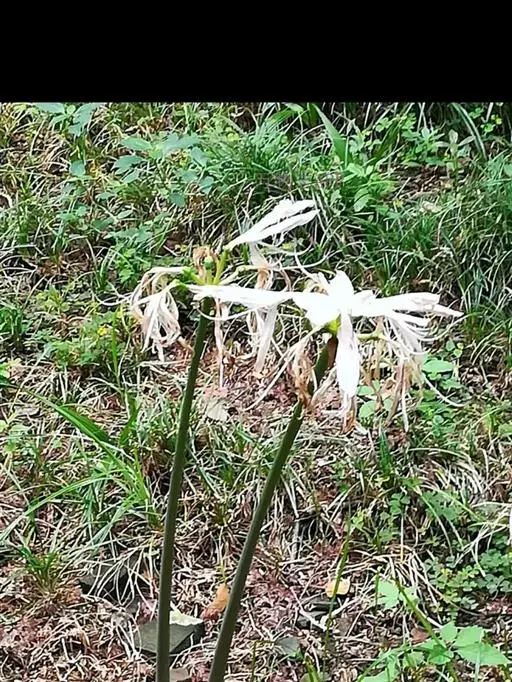 长筒石蒜(花) 长筒石蒜为多年生植物。鳞茎卵球形,直径约4 厘米。早春出叶,叶披针形,长约38厘米,一般宽1.5厘米,部最宽处达2.5厘米,顶端渐狭、圆头,绿色,中间淡色带明显。花茎高60-80厘米;总苞片2枚,披针形,长约5厘米,顶端渐狭,基部最宽达1.5厘米;伞形花序有花5-7朵;花白色,直径约5厘米;花被裂片腹面稍有淡红色条纹,长椭圆形,长6-8厘米,宽约1.5厘米,顶端稍反卷,边缘不皱缩,花被筒长4-6厘米;雄蕊略短于花被;花柱伸出花被外。花期7-8月。 有蒴果,结籽少。