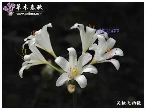 陕西石蒜草本,地生。鳞茎近球形;叶带状;伞形花序,有花5-8朵,白色,花被裂片腹面散生少数淡红色条纹,…