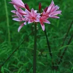 稻草石蒜草本,地生。鳞茎近球形;叶带状;伞形花序,有花5-7朵,花稻草色;花被裂片腹面散生少数粉红…