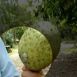 果实为聚合果,由多数心皮合生而成,呈球形、心脏形或圆锥形,纵径约6-7.5cm,横径约8-9cm,重100-350g,黄绿色、有白粉。果肉乳白色,浆质,味极甜,有芳香。果内有种子25-60粒,种子黑褐或深褐色,光滑,纺锤形、椭圆形或长卵形。
