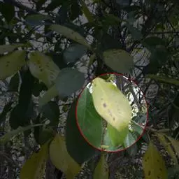 溃疡病为害叶、枝稍和果实,造成落叶落果,叶背始呈黄色渍状小斑点,以后逐渐扩大呈近园形,两侧隆起,粗糙木质化,其中央有裂口,最后为灰褐色,成溃疡状,四周有黄色晕环,严重者引起落叶,溃疡病菌随风雨传播,在20至30℃和湿润气侯发生最为严重。