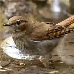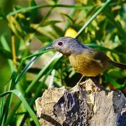 红尾歌鸲:体长13-15厘米。上体橄榄褐色。尾羽棕栗色,眼先和颊黄褐色,眼周淡黄褐色。…