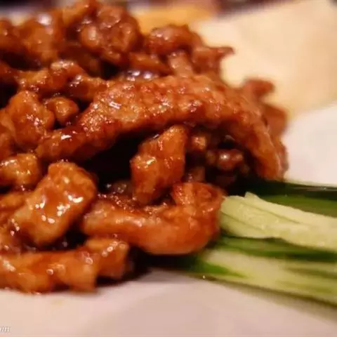 京酱肉丝,是一道知名度很高的菜肴,它是北京菜中的经典代表菜之一。制作时选用猪瘦肉为主料,辅以甜面酱…